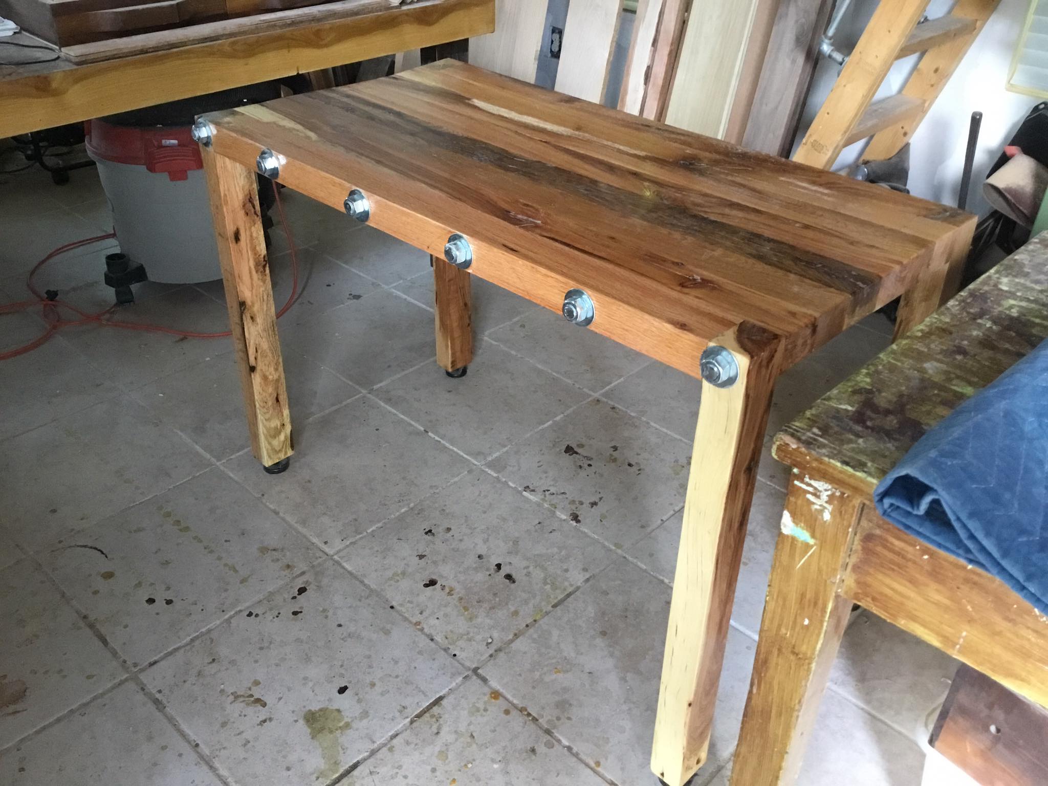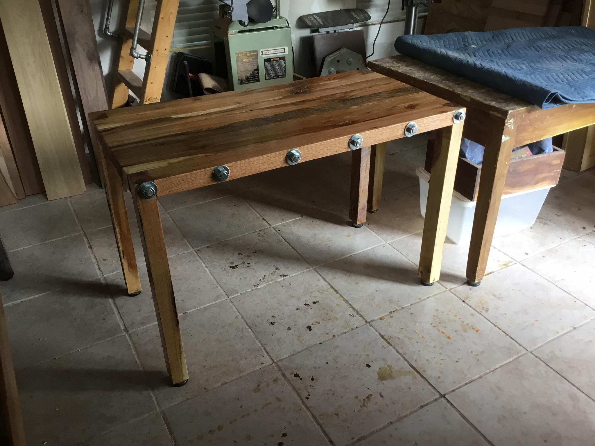 Solid oak table Posted on June 28, 2016November 5, 2016 by Chris Winding Solid oak table inspired by Jimmy DiResta. 3×2″ planks with 3/4″ threaded steel tie rods. Comments comments